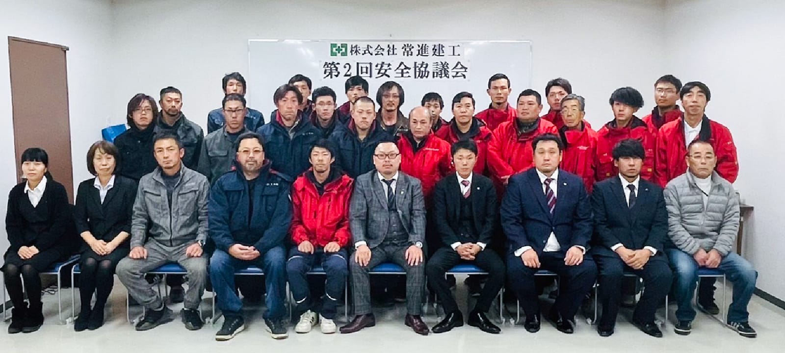 安全協議会は毎年、年末に行っています。安全協議会では初めに全員で一年を振り返り、その後はテーブルディスカッションを行なって一人一人の安全意識の向上を図っております。弊社では年一度協力会社様を含めたグループ全員での安全活動と、定期的に安全ミーティングを行っております。