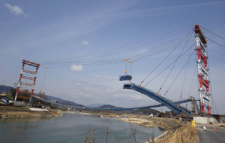 橋梁鳶工とは簡単に言えば高速道路や一般道の海や川の上・山の中に橋を架ける職人をいいます。橋梁鳶工の必須条件は橋の構造が複雑なため、いざという時に瞬時にくだす繊細な判断と、大型クレーンで吊り上げられた重量物を高所で器用に扱うことができる高度な経験と技術が必要となります。